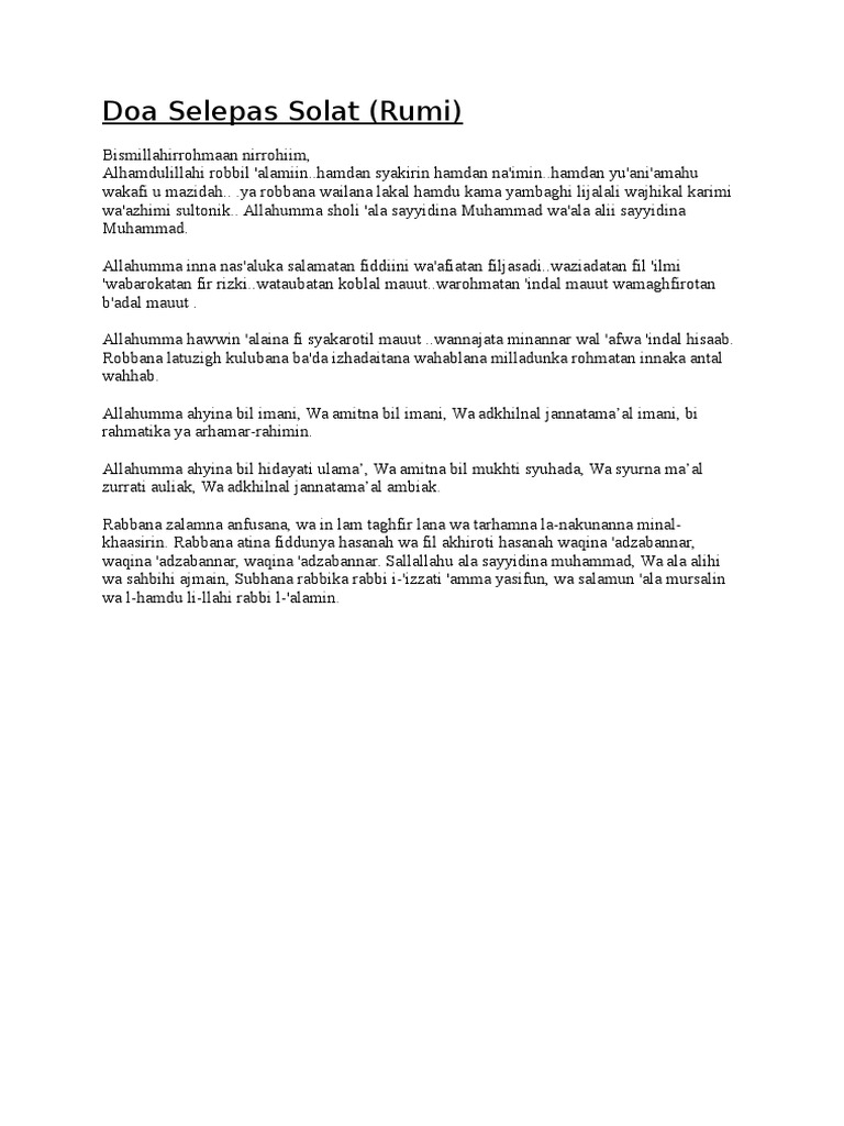 Bacaan Doa Ringkas Selepas Solat Rumi Dan Jawi Doa Harian